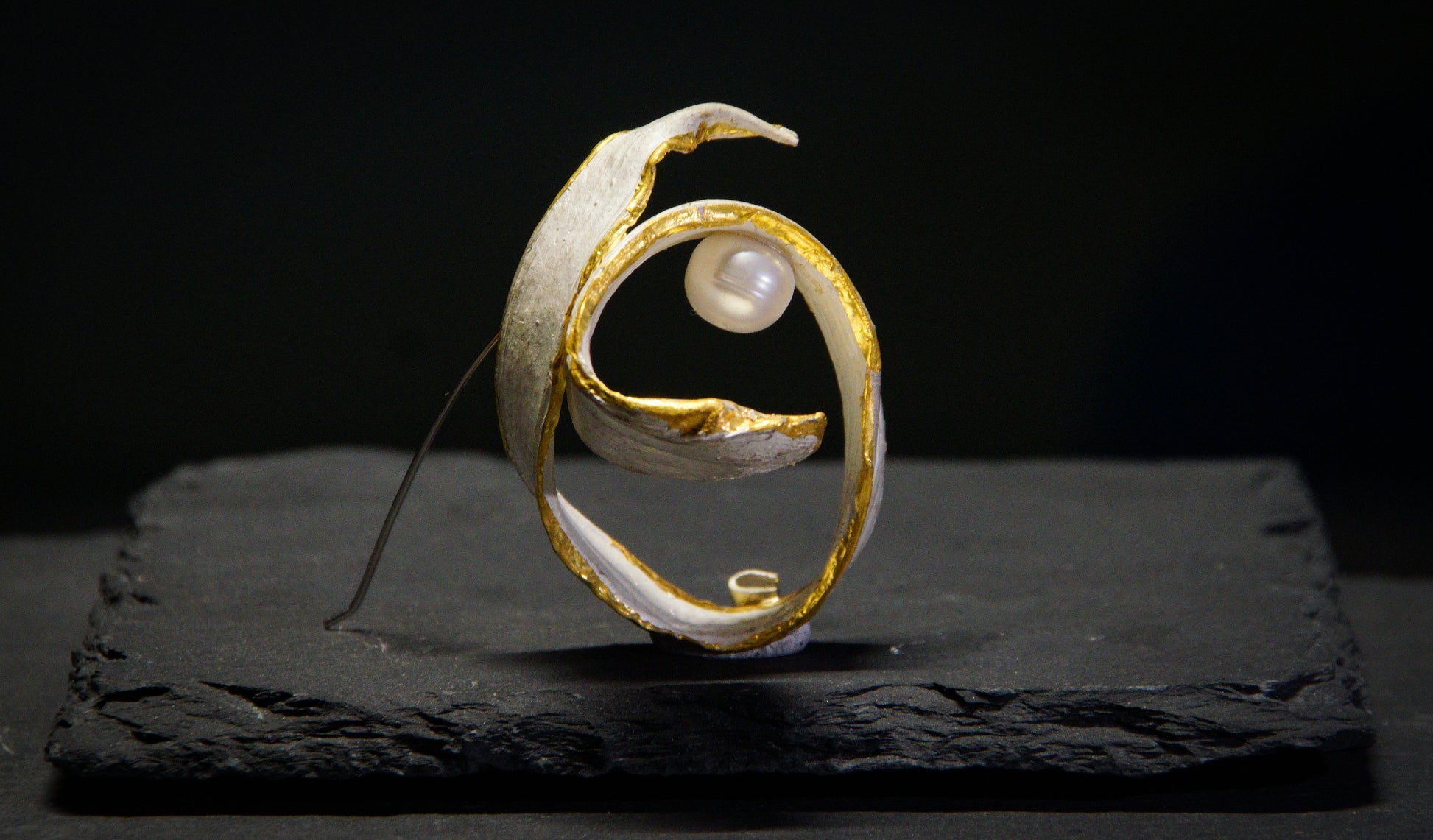 Prendedor en plata 950, keum boo (oro 24k) y perlas.